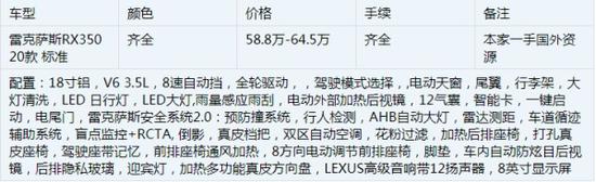 2020款雷克萨斯RX350具体配置: